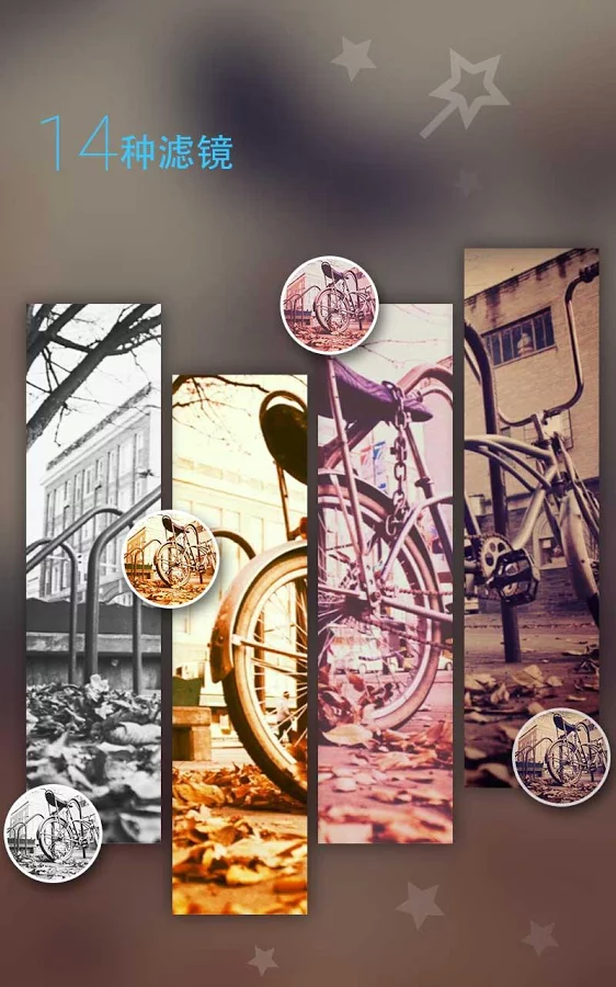 可调节图片的亮度,对比度,饱和度和模糊度;17款滤镜,百变风格!
