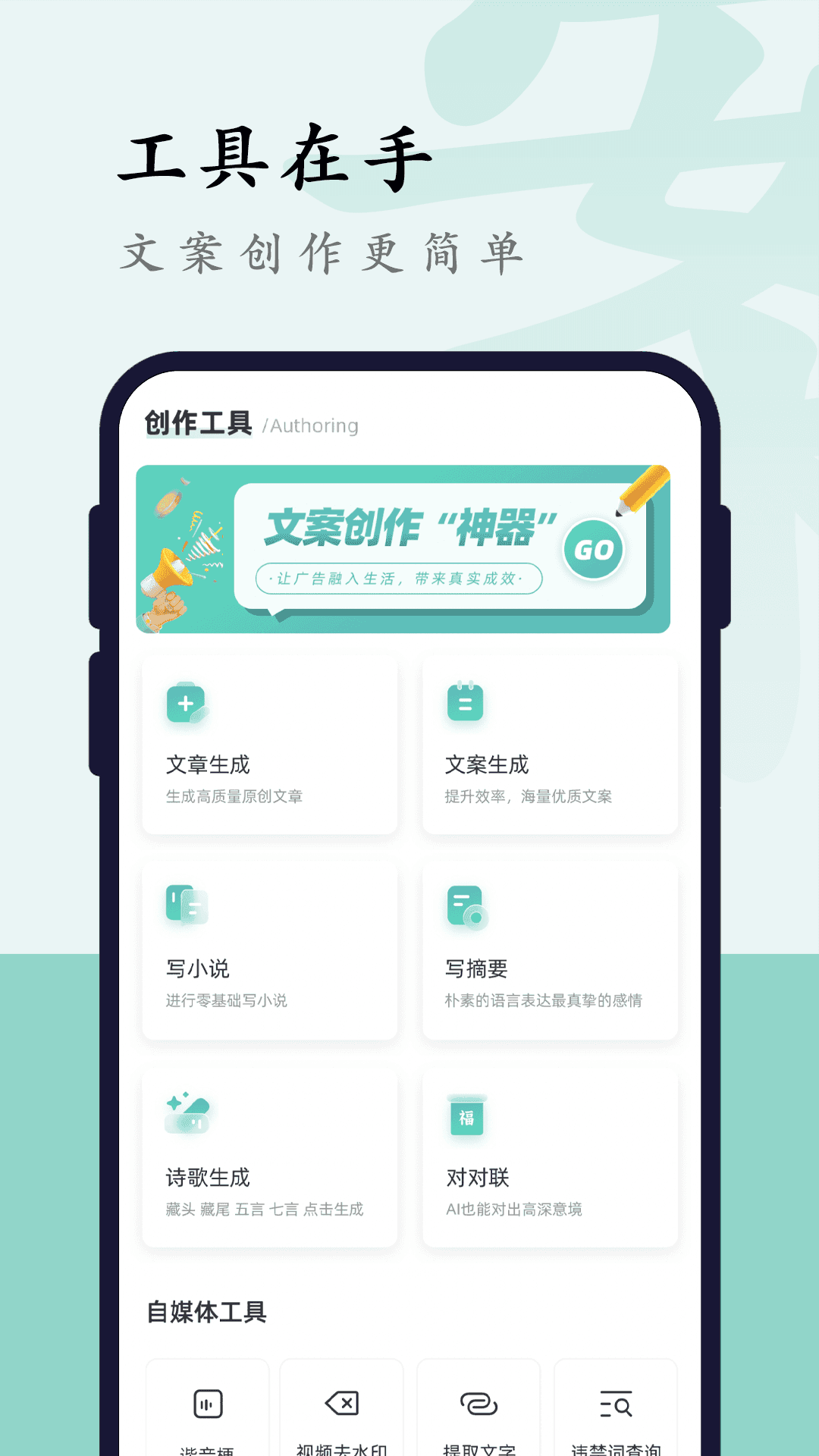 快速生成文案:用户可以根据自己的需求,选择文案类型和主题,快速生成高质量的文案。