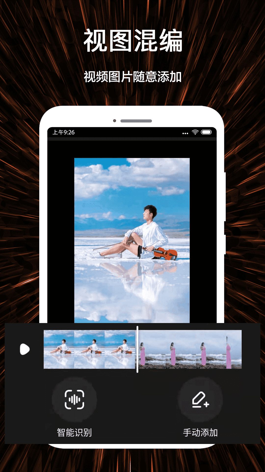 视图混编、图片编辑、字幕编辑、双语字幕、变速编辑等各种编辑方式,让您几秒成为视频编辑高手