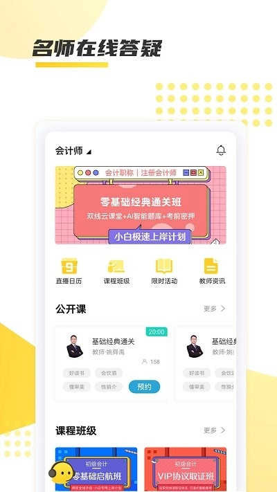 聚学教育是一款非常优质的手机教育学习软件,提供会计、自考学历、教师资格证、家庭教育指导员等考试类型,优选题库免费练习,各种教学面试技巧等您查看,快来试试,让您快速拿到证书。