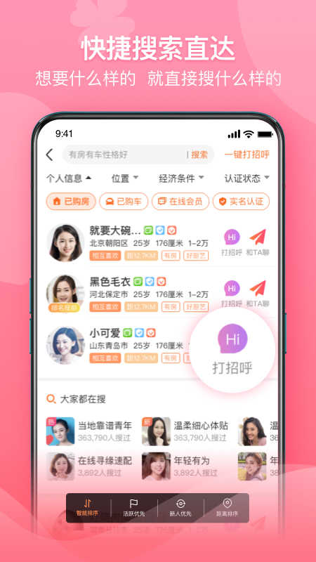 2、单身男女必备的脱单神器,真实高效的同城约会交友平台。