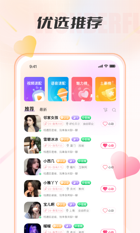 5、有缘的人总会在这里相遇,扩大每个用户的交友圈,遇到命中注定.