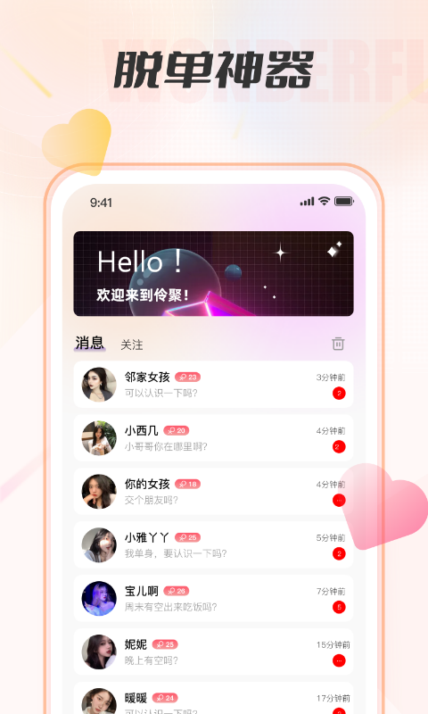3、脱单就是那么的简单,轻松找到一个懂自己的人,随时随地聊天.