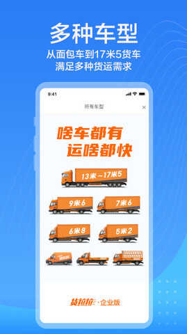 货拉拉企业版app是专为企业用户打造的一个专业、高效、便捷的拉货运输找货车平台,而且需要运输大型货物时货拉拉企业版比个人版更划算。还提供司机加入平台的服务。货拉拉企业版app可以随时随地了解司机服务态度,方便分配车型、人员、工资,操作简单、直接一键下单。
