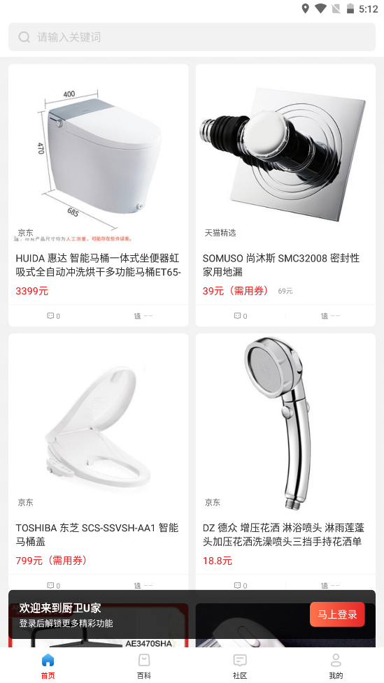 app就如同软件的名字一样,是专门为广大用进行厨房,卫生间用品的售卖和资讯服务,用户们可以在平台上了解到各种各样的商品信息;