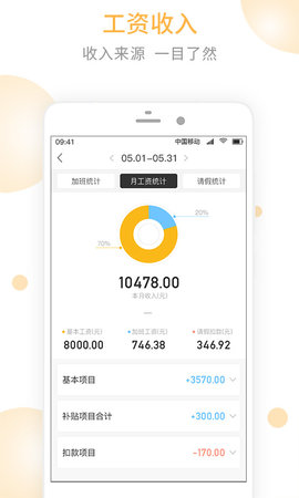3、【每月工资统计】:清楚显示你一月加班/请假时长,精准计算每月加班工资,让你的工资一分不少!