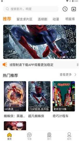2、提供全面的分类、热门推荐、强大的搜索功能等可以让用户快速找到自己想要观看的影视资源。