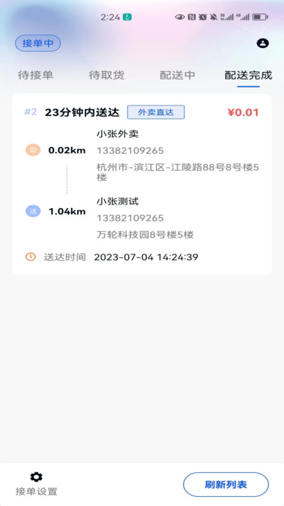 1、订单管理:包括订单派送,订单状态更新等功能的一个应用;
