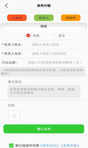 3、为广大乘客提供一个便捷、实用、安全的拼车方式,始终坚持以用户为本,把用户的安全放在首位,支持用户实名认证,确保拼车的安全性。