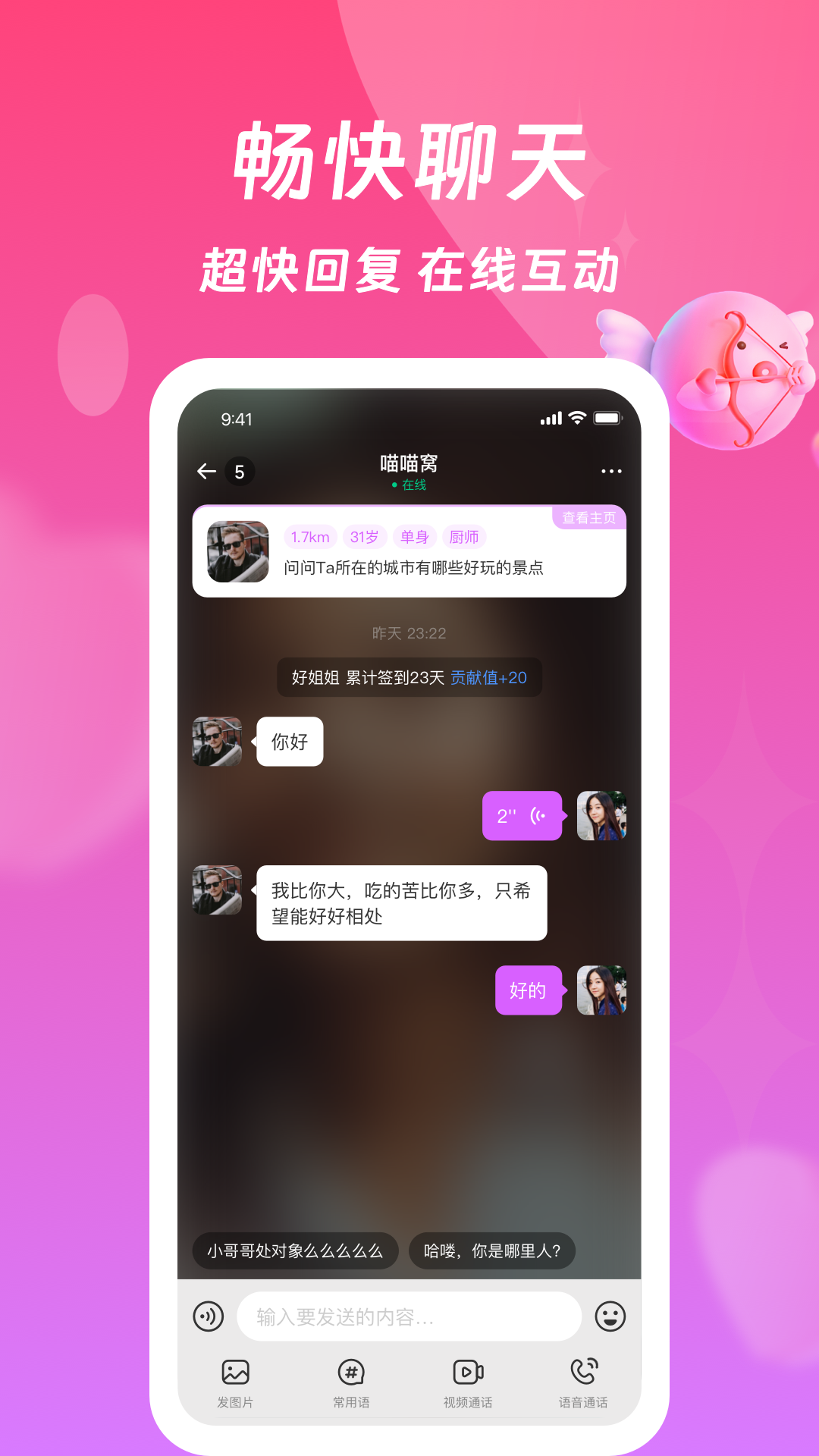 糖趣是一款与众不同的社交软件,它以“甜蜜交友,享受生活”为宗旨,提供高品质的交友服务。无论是寻找恋人、朋友还是聊天伙伴,糖趣都能满足你的需求。该软件用户基数广泛,用户来自各行各业,您可以通过这个软件认识更多的人,扩大自己的社交圈。