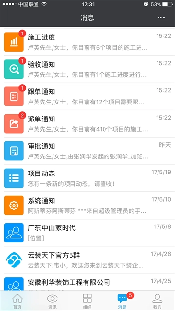 组织架构:云装天下app多级组织架构自由编辑,灵活方便!