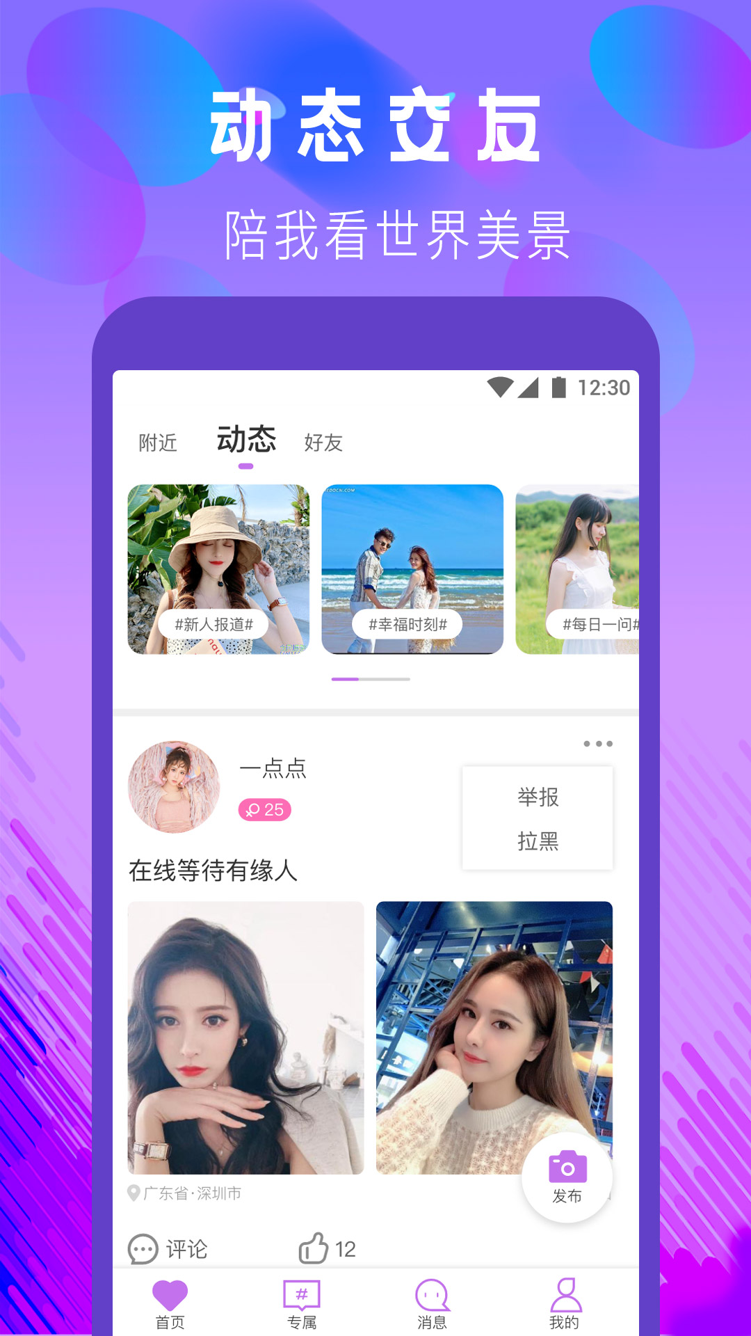 可以在社区中动态发布,内容可以是文字,图片,视频等,让更多的人深入认识自己;