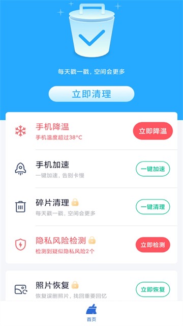 1、随时在线清理垃圾,各种缓存垃圾都能清楚干净。
