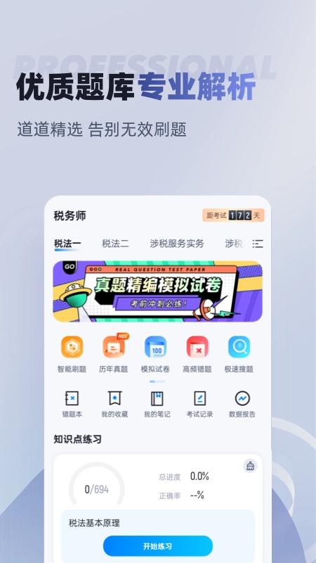 2、覆盖税务业法律法规与综合能力,更支持语音和拍照搜题,个人理财等全部科目的题库。