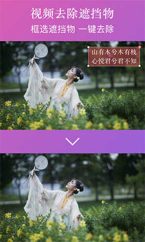 2、帮助您快速去除视频中被遮挡的物体,只需用手指选择,一键快速去除;