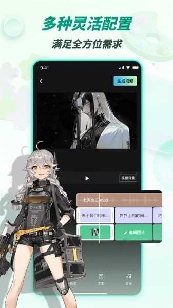 音乐添加:支持多种音乐导入和添加,支持音乐裁剪、音量调整等功能。