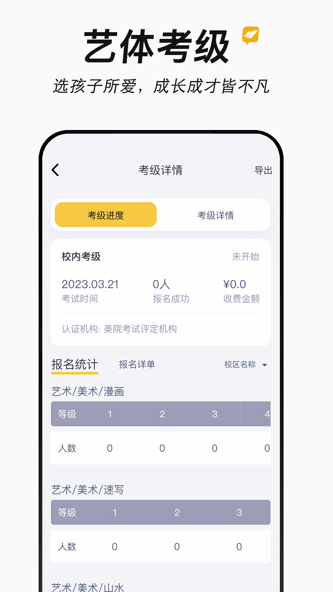 新学易管理版app是一个专门为美术考试培训教师而设计的管理软件,您可以通过该软件来发布课程内容,并对学员的学习状况进行管理。提供网上等级登记、考试结果查询等业务。可以通过手机查询每个月的收入,可以查询学生的学习进度,可以查询各级别的报名和考试的详情,还可以在线发布最新的比赛消息,感兴趣的朋友快点来下载体验吧。