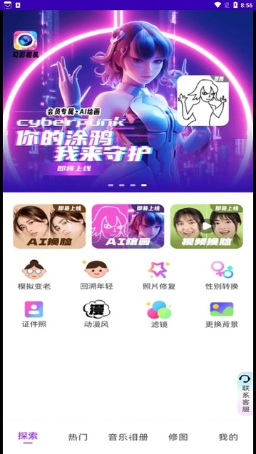幻彩相机是一款简单实用的相机软件,具有专业的摄影功能,提供丰富多样的滤镜和特效,无论是美颜、换脸、滤镜、背景虚拟化还是动画特效,都能满足您的需求,还提供各种图片编辑处理工具,帮助大家轻松美颜!