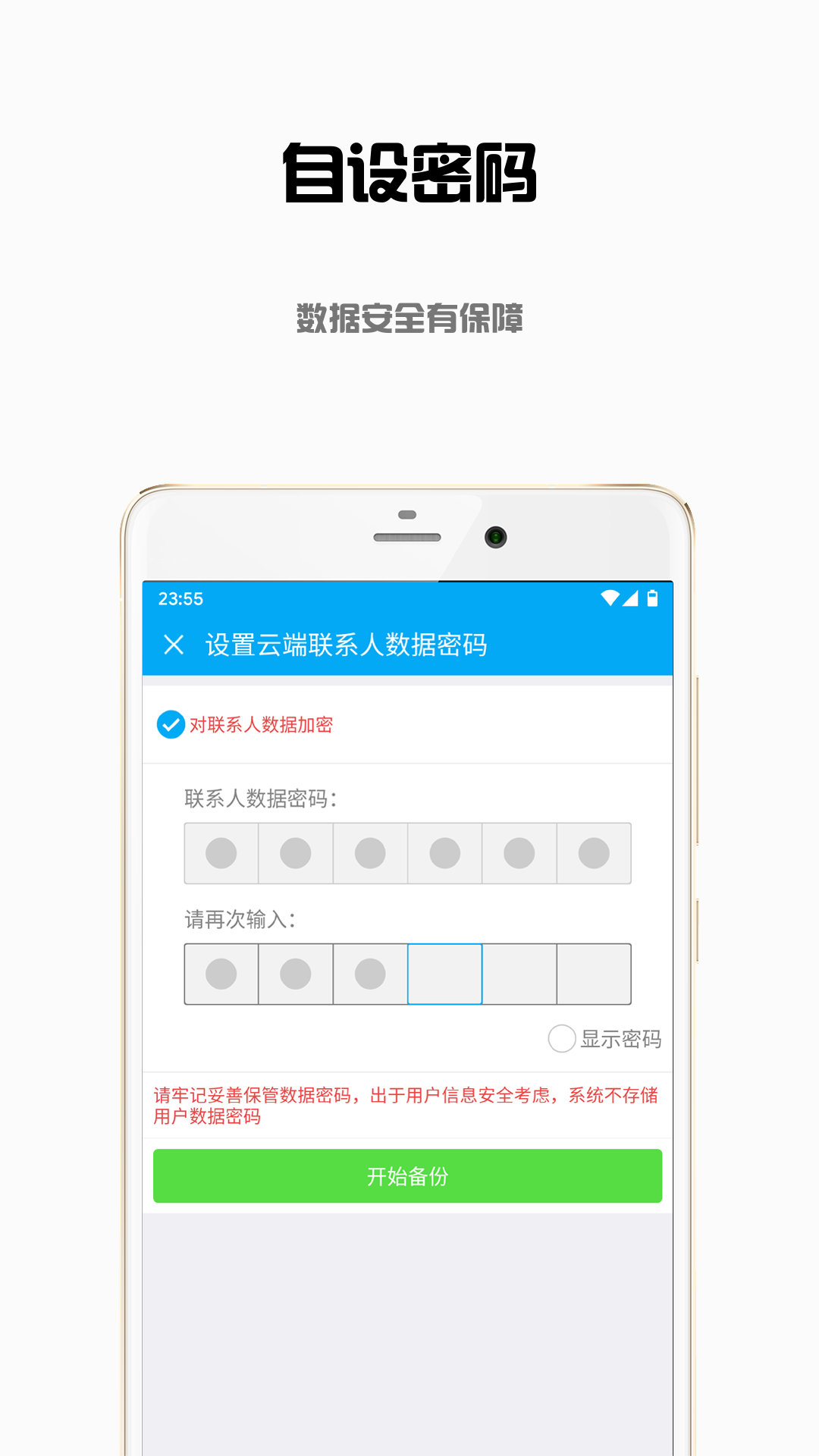 您可根据自己需要设置联系人、短信等数据密码,让您的数据安全有保障