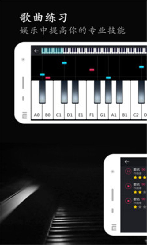 - 演奏功能:这款钢琴游戏拥有海量钢琴练习曲,可以跟着手机演奏慢慢学