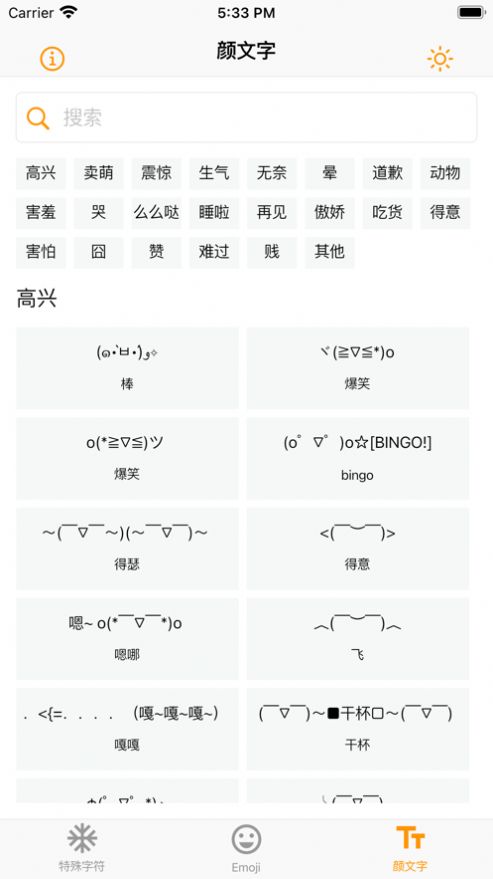 1.一款手机聊天字符工具,里面有大量的有特殊符号,Emoji以及各种颜文字。