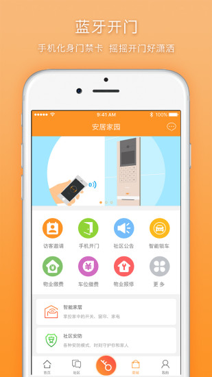 安居家园是一款方便人们社区生活服务的软件,让你的小区变成一个大家庭,更有安防探测器能够实时警报推送消息,这样就再也不用担心忘记带钥匙打不开门,单元门口机呼叫手机app,业主接通后可远程通话与开锁,方便业主接收到小区的各类的服务资讯,喜欢的话就赶快下载使用吧!