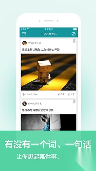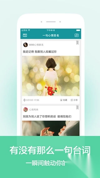 一句心情签名app是一款每日一推的美文和正能量句子的心情语录app,励志的话语配上精美的背景,给你带来全新好心情的一天。