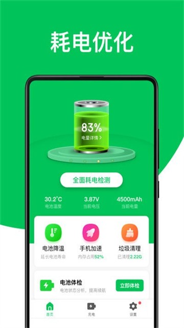 舒克绿色电池管家app属于一款非常好用的电池管理助手,您可以实时查看电池的使用情况,也可以一键查看各个程序的耗电情况,还支持一键开启省电模式,操作非常的简单,同时实时为您提供手机清理的功能,让您的手机运行更加的流畅,管理非常的省心。