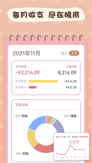 【记账和备忘】快速记录日常生活收支情况,月度报表便于分析;日常琐事轻松记录。