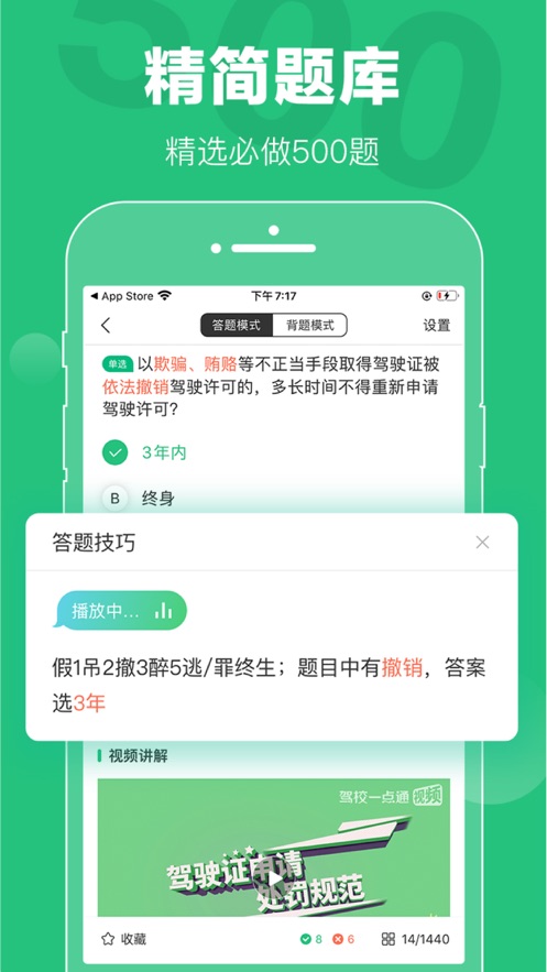 每道题驾校一点通都为您提供了同类题型的答题技巧,让你做到同类题型不再出错!
