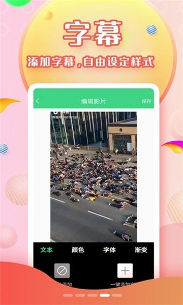 字幕视频制作,专业视频字幕处理工具。视频自由拼接,任意选择不同的尺寸进行其中的编辑,字幕个性化设置,不管是花字字体,还是颜色大小,均可由你的想象完成。添加不同样式的字幕,给你的视频增添趣味元素,添加字幕、视频剪辑、添加音乐、视频拼接,功能多多。
