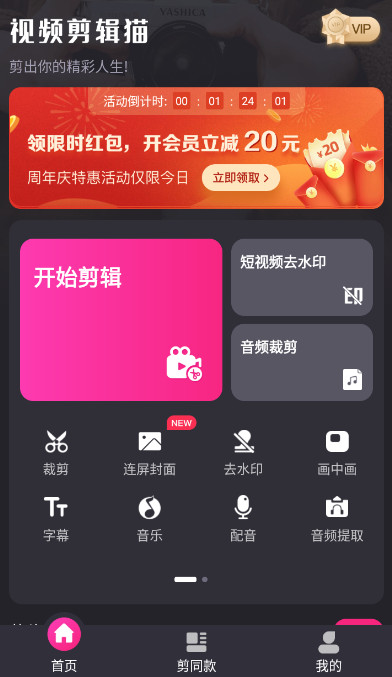 2、剪辑猫视频去水印app让你的视频素材更干净,视频一键分享,