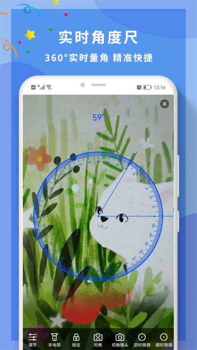 2、量角器可以自由使用,可以知道物体的角度,通过相机拍摄测量,随时测量。