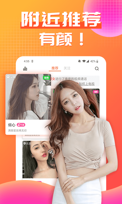 附近速配,解决陌生人单身社交,破冰式真实视频聊天,真诚寻爱的单身交友环境;