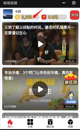 3、呱呱视频各种精彩的智能推送、详细的分类和自由选择,该软件还有很多红包奖,下载后可以立即发放。