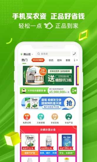 2、在首页中查看各种热门的农资产品信息,定制自己的专属方案,快速进行采购