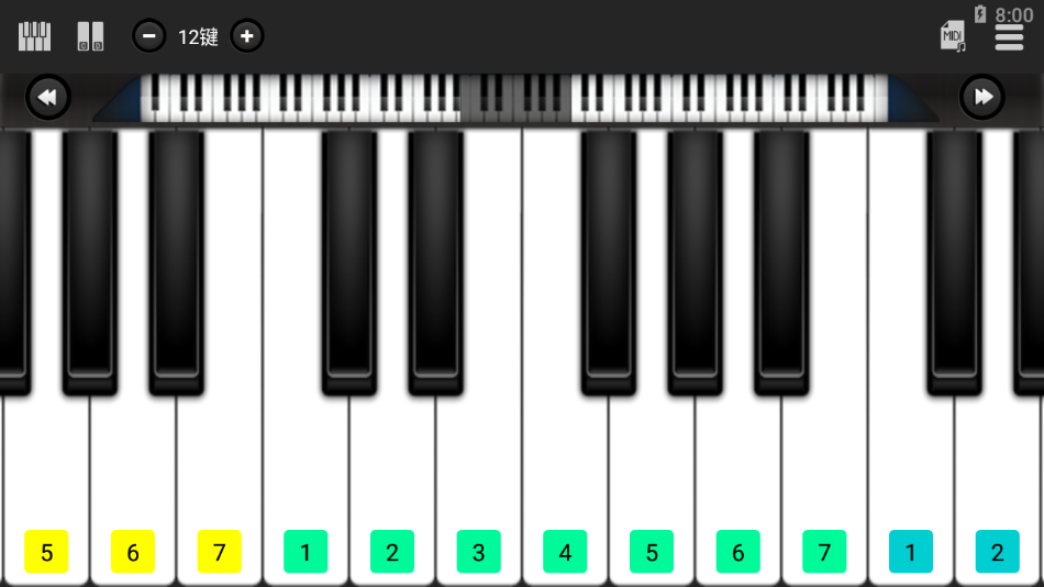 -可自行调节钢琴块的宽度:点击钢琴键盘左右两边的+-号可随时调节钢琴块的宽度。