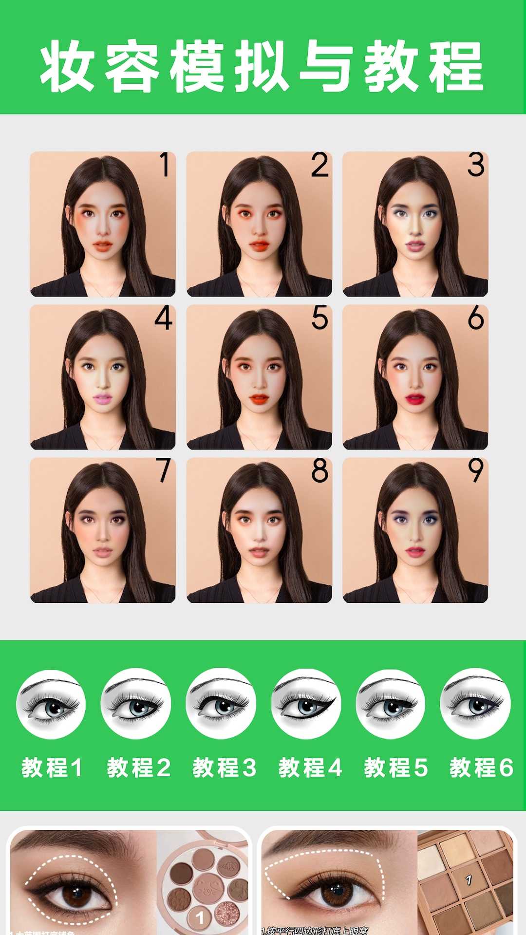 2、根据不同的眼型,匹配不同的眼妆类型,也对6种不同类型下都有详细的眼妆教程。