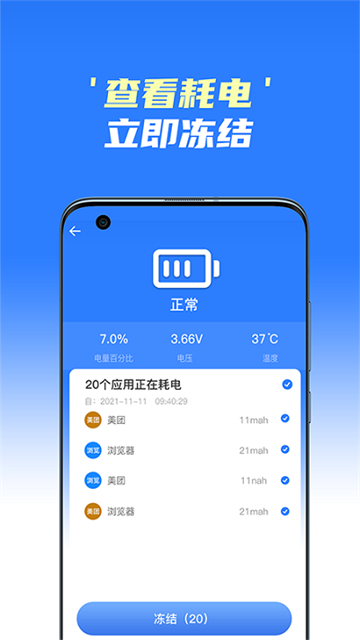 4.软件会自动的清理用户的手机,同时查看里面的耗电情况。