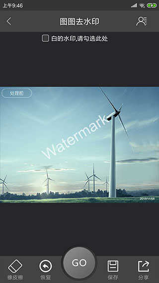 图图去水印App支持多种类型的水印,包括文字水印、LOGO水印、二维码水印等。