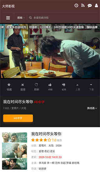大师影视软件提供了一个免费的流媒体平台,让用户可以轻松浏览和观看最新的电影和电视节目。该软件的用户界面简单易用,让用户可以轻松找到他们想要观看的内容。最重要的是,该软件是完全免费的,因此任何人都可以使用它。