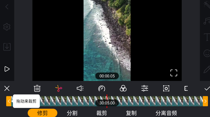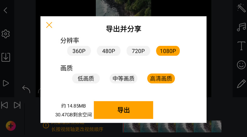 剪辑剪切视频到所需要的长度,导出高清视频,简单易用的视频剪辑软件。