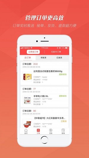 2.每个商户在这里都可以轻松地浏览各种不同的订单内容。