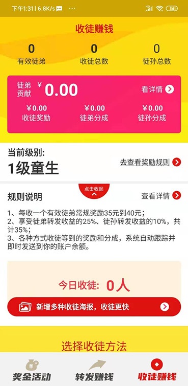 3、邀请好友下载使用火箭涨最高可获得40元的平台奖励,同时还会获得两级提成共35%