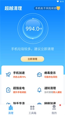 超越清理是一款操作简单使用方便的系统工具,软件有非常强大的模块,让我们可以按照不同工具针对手机进行各种垃圾的清理,快速的检测手机生成的垃圾,对他们进行管理和删除,这样会提高手机的反应速度。