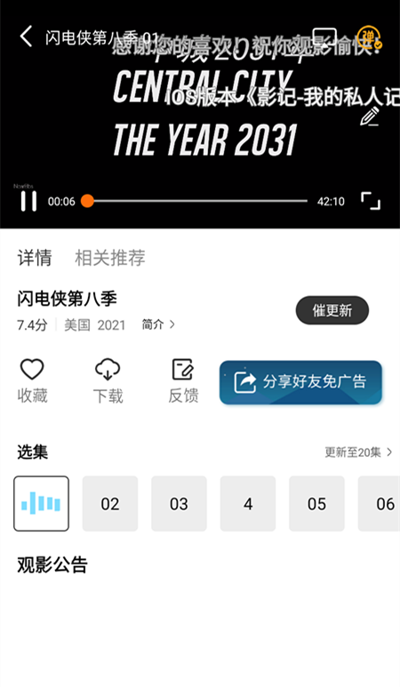 1、不用担心网络和流量,一键下载,随时观看,支持播放各种格式。