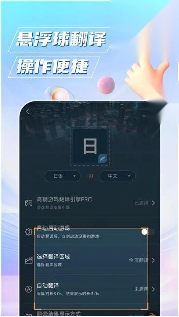 1、专门为游戏爱好者提供翻译服务,它可以自动翻译游戏屏幕中的文字内容;
