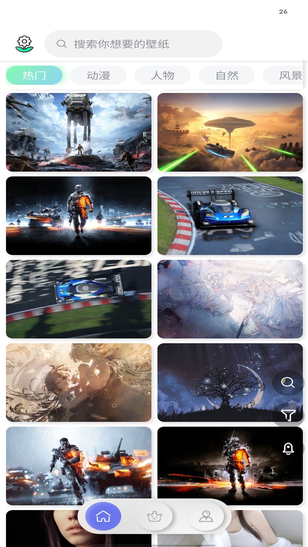 该软件提供了实时更新功能,让大家可以第一时间了解到最新的壁纸图片,软件的使用非常简单,轻松浏览、搜索和下载所需要的壁纸图片,支持多种分辨率的壁纸,可以适应不同手机的屏幕大小。