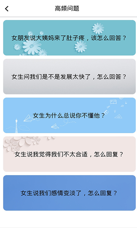 优质的恋爱聊天话术教学app,当不知道如何回复的时候也可以在线搜索,能够看到详细的聊天实例截图,轻松完成脱单!