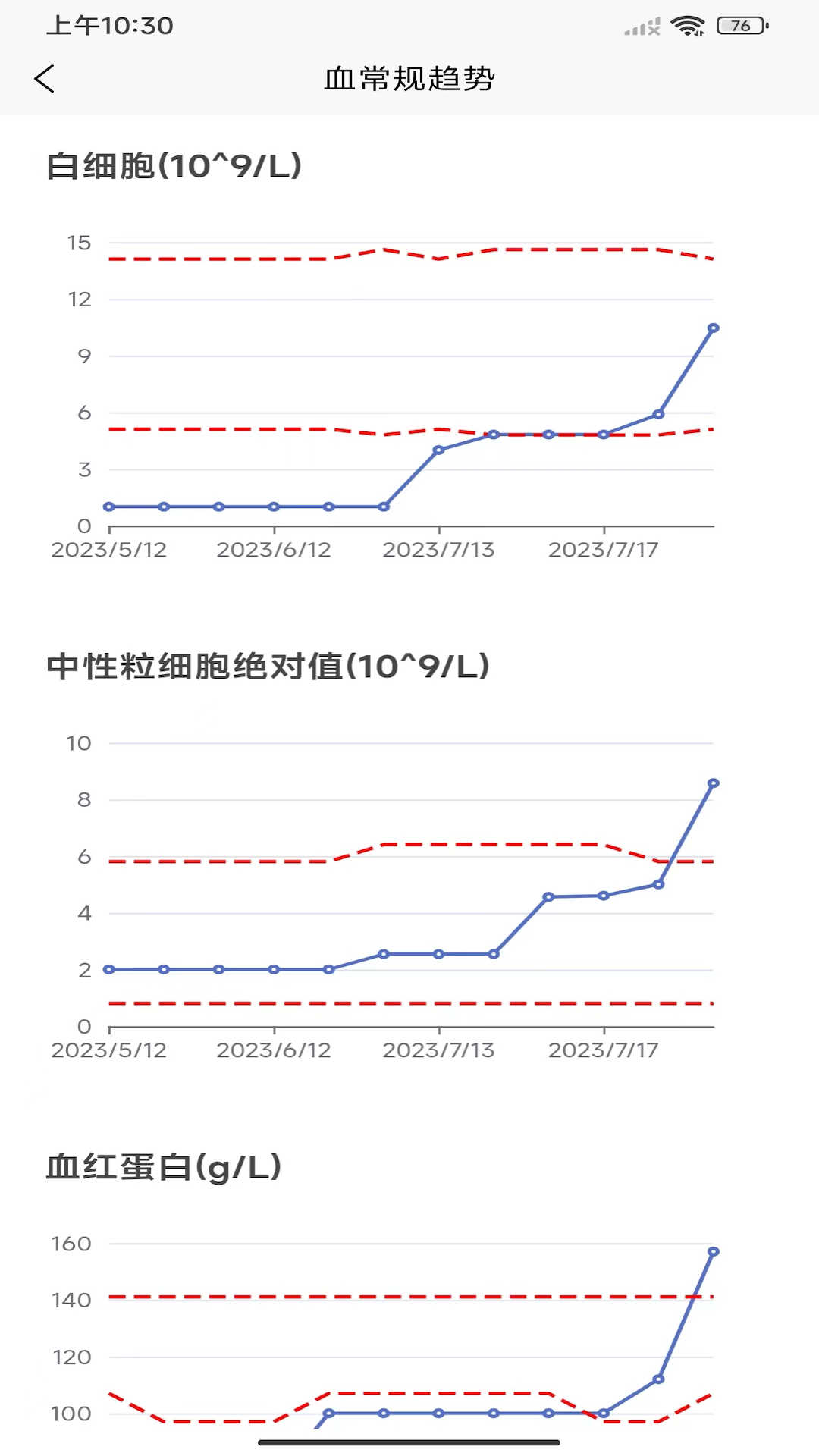 3、支持医生多角度查看血常规数据,如时间序列、趋势图等,方便分析患者病情。